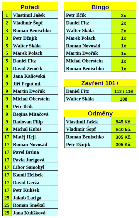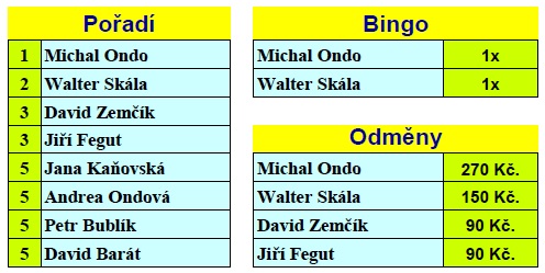 | 2 | Jaroslav Kovařík ml. (150kč) |